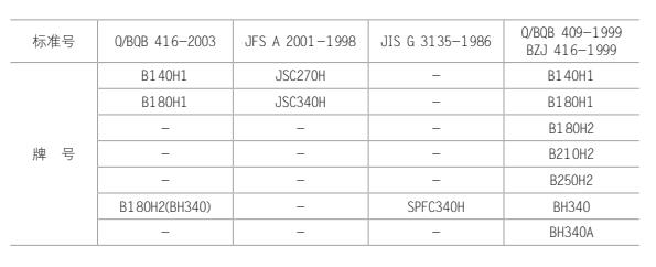供貨標準、牌號與相當或相近標準、牌號對照表: