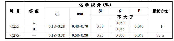 7.在供應商品鋼錠(包括連鑄)、鋼坯時,供方應保證化學成分(熔煉分析)符合表2-1規(guī)定,但為保證軋制鋼材各項性能符合本標準要求,各牌號A、B級鋼的化學成分可以根據(jù)需要進行適當調(diào)整,另訂協(xié)議。幕墻行業(yè)常選用:對焊接結(jié)構(gòu)Q235-BF,Q235-BF,Q235-BF,Q235-BF,對非焊接結(jié)構(gòu)Q235-A。